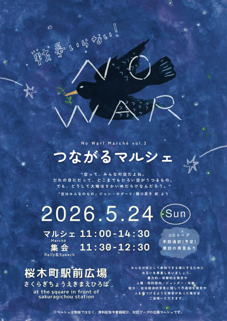 日 時 2026年5月24日(日) マルシェ 11時〜2時半 集会 11時半〜12時半